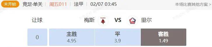 竞足 周五011 法甲 梅斯VS里尔